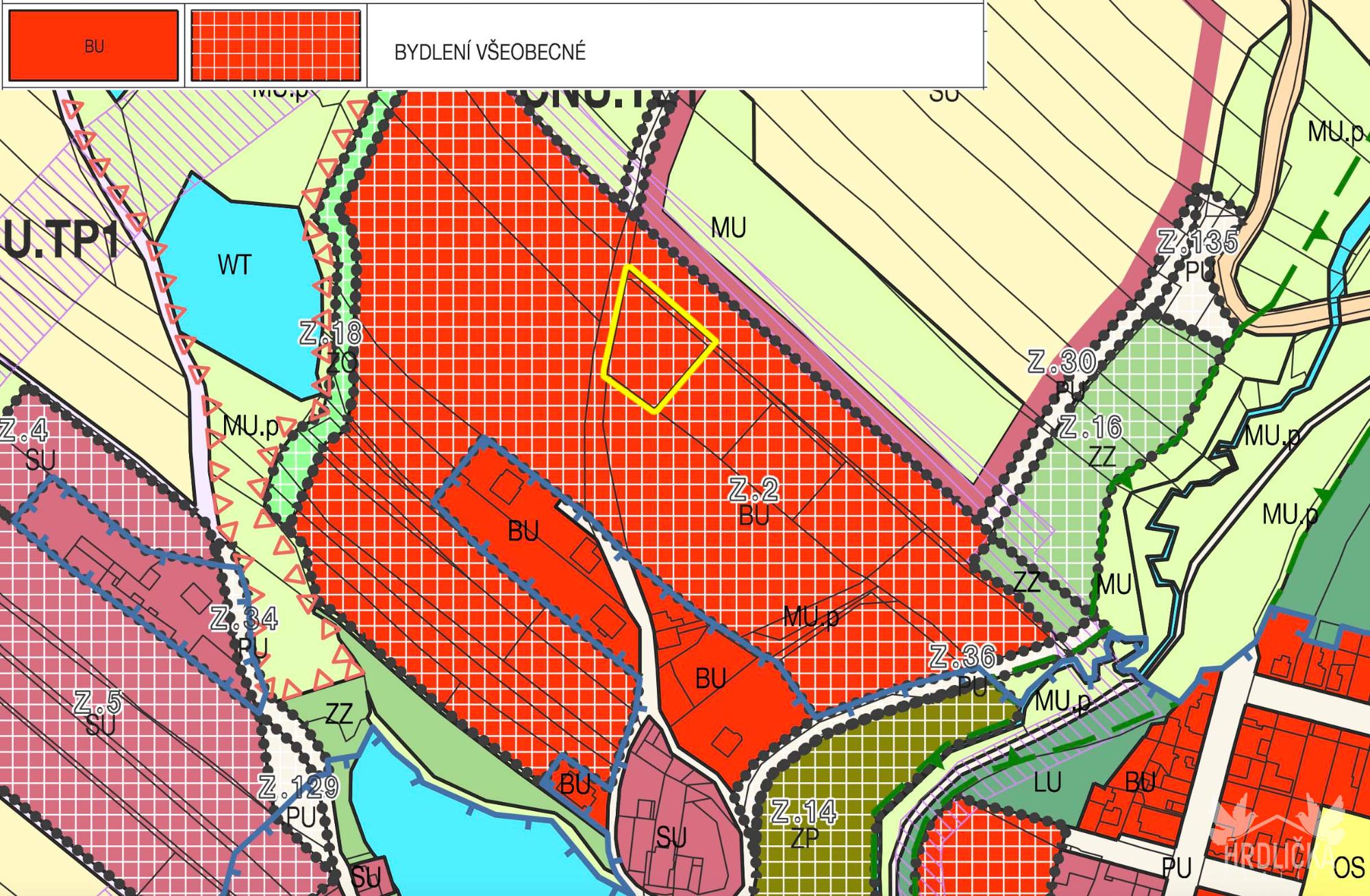 Tato lokalita je součástí rozvojové zóny města (2-B), kde již byl změněn územní plán, který je podmíněný zpracováním územní studie. Hlavní využití: Plochy bydlení zahrnují činnosti, děje a zařízení související bezprostředně s bydlením. Přípustné využití: – rodinné domy, bytové domy, související dopravní a technická infrastruktura, veřejná prostranství – zeleň různých forem (např. veřejná, vyhrazená, zahrady, ochranná a izolační, krajinná ).