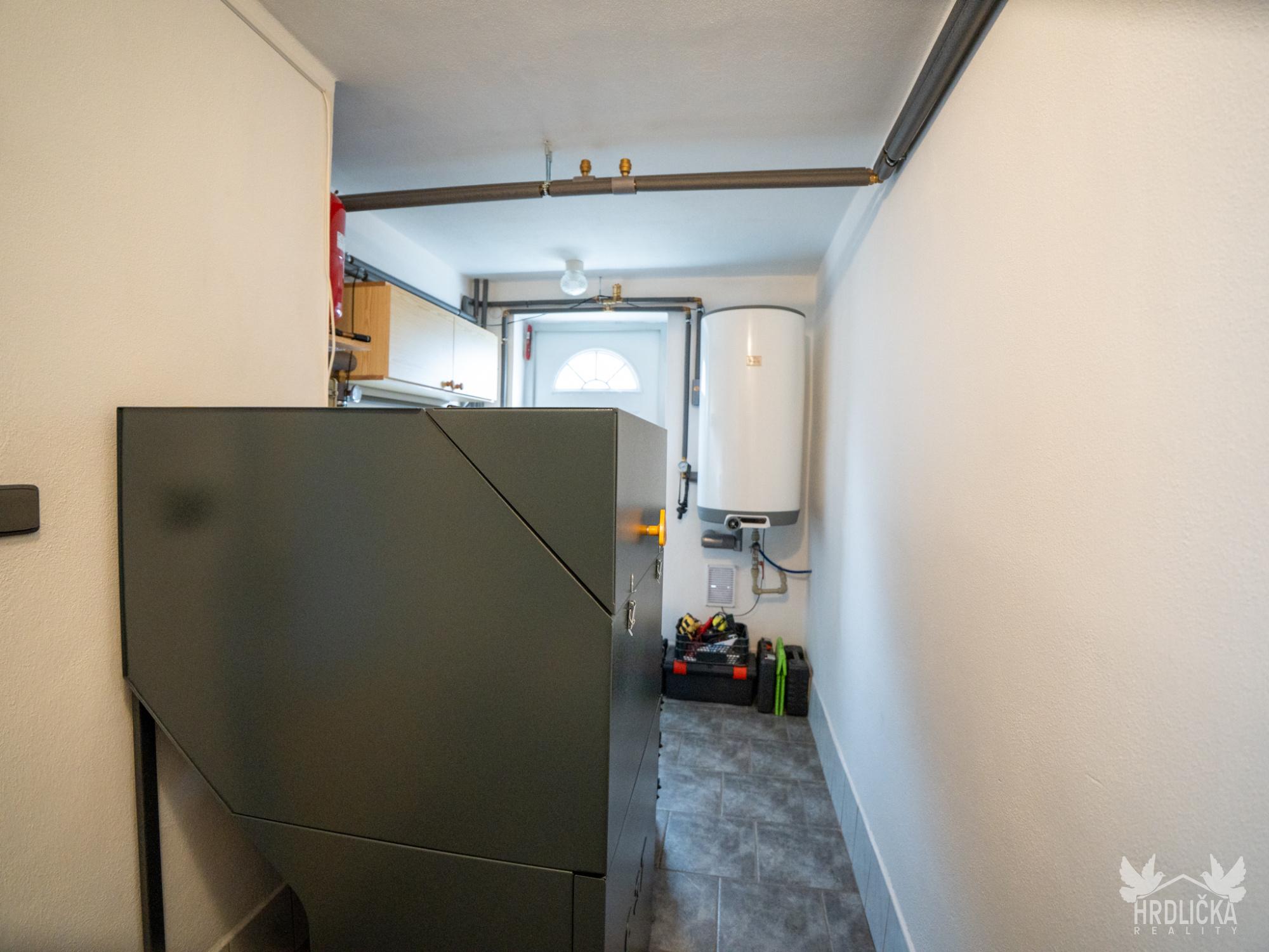 Vytápění domu zajišťuje moderní kotel na pelety s rozvody v mědi do ústředního topení, ohřev vody obstarává bojler. Okna jsou plastová s izolačním sklem, voda je čerpána z vlastní studny, odpad sveden do vyvážecí jímky.