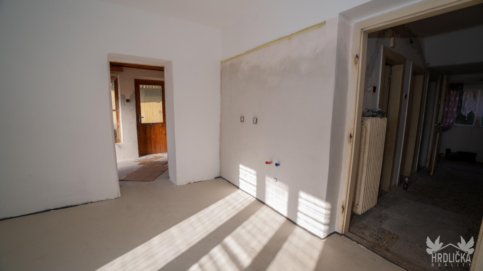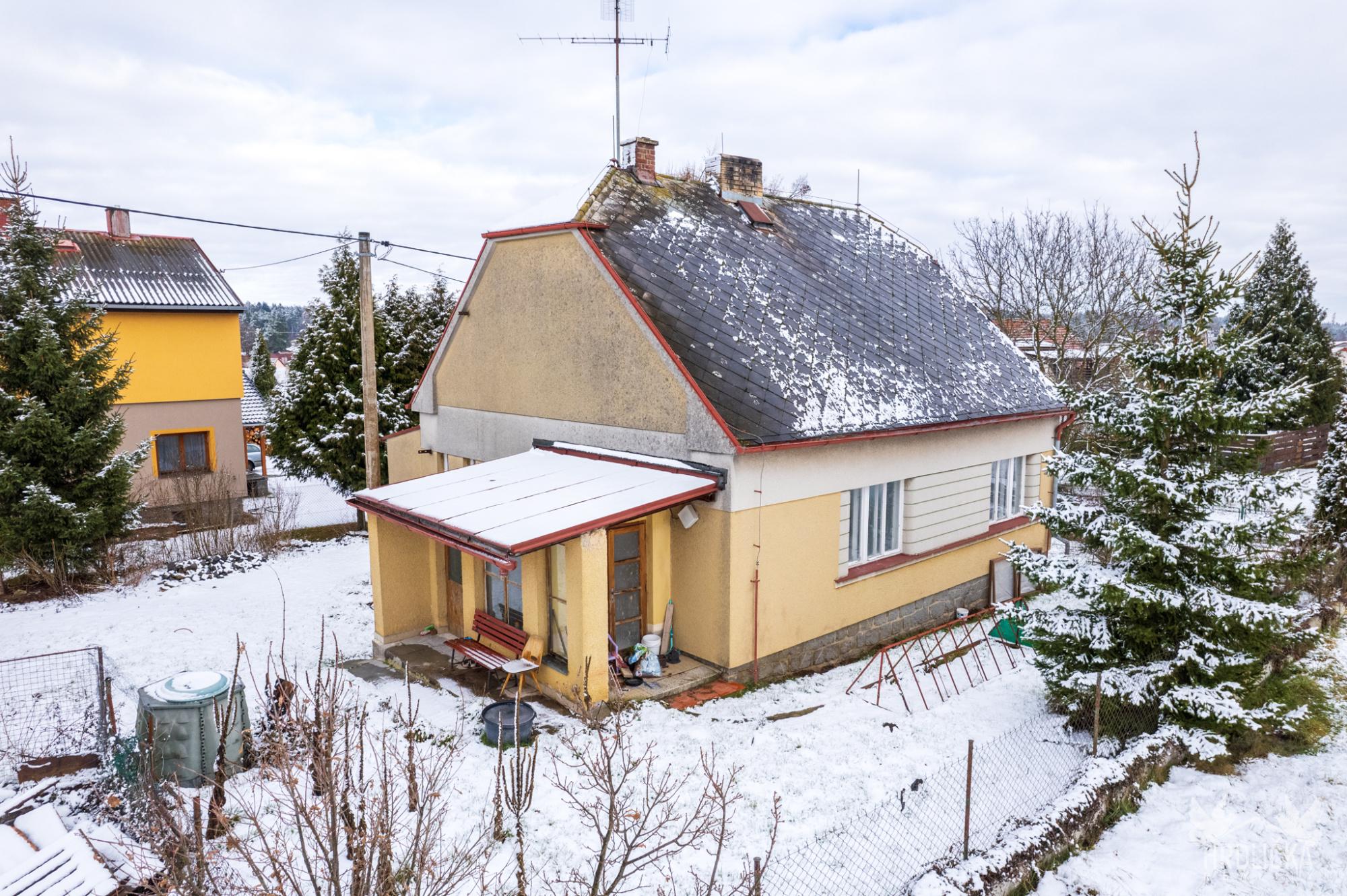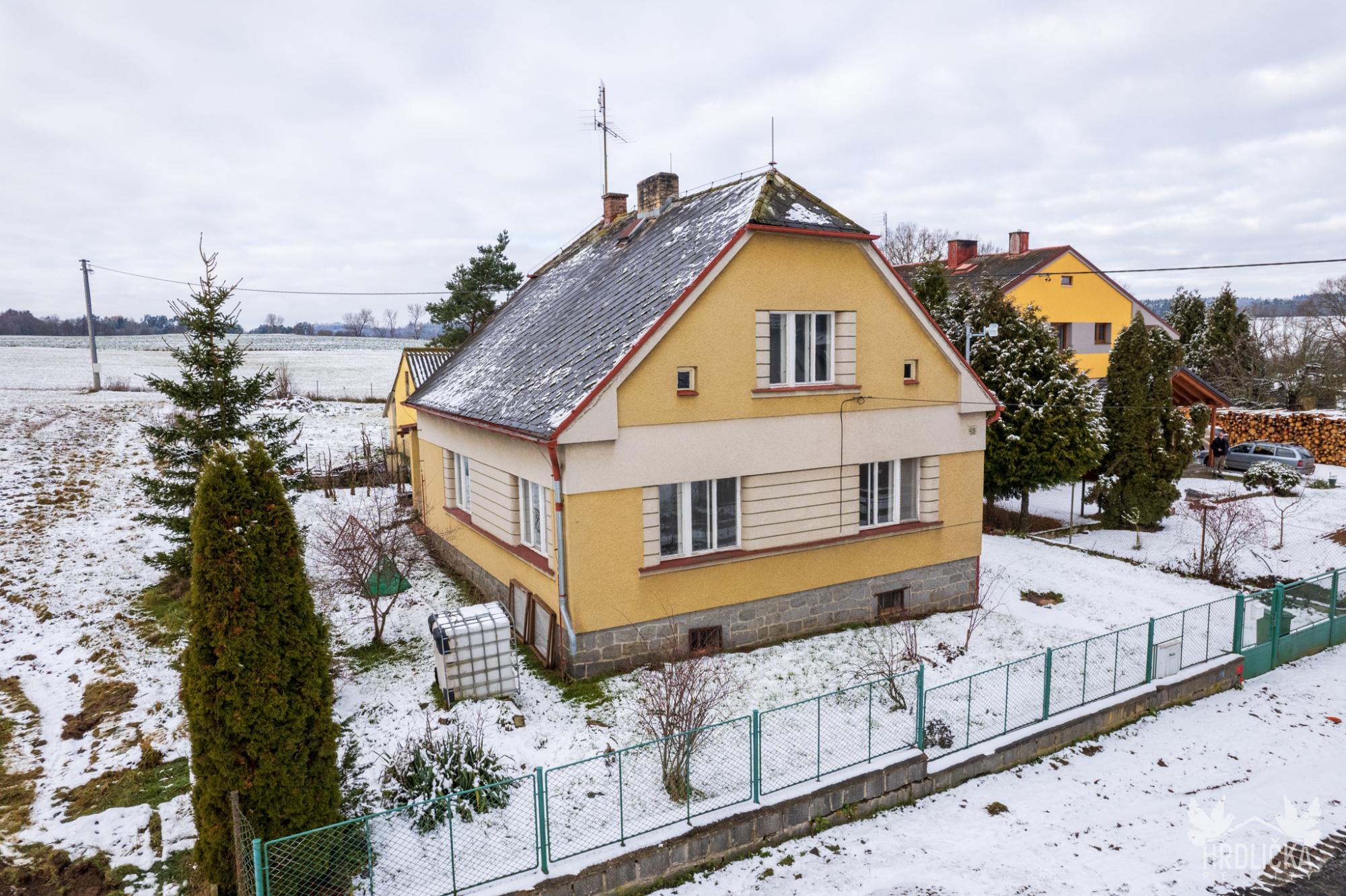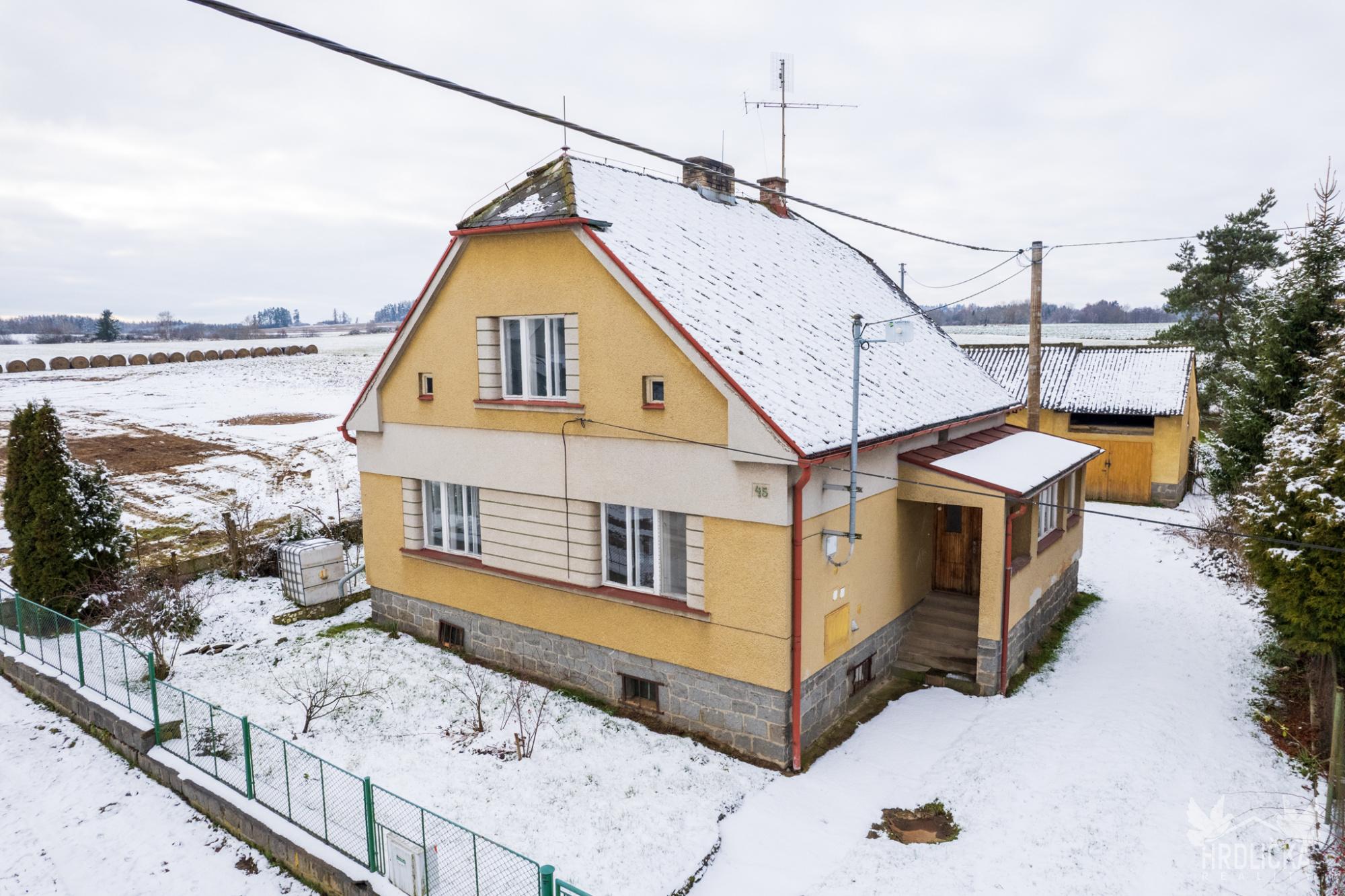 Dům o dispozici 3+kk je zděné konstrukce a aktuálně prochází rekonstrukcí, která je před dokončením. Zastavěná plocha činí 105 m², přičemž součástí nemovitosti je také řada praktických vedlejších staveb – garáž a zděná kolna. Užitná plocha hlavních místností (koupelna, samostatné WC, sklad, chodba, veranda) je 80 m². Dům je navíc částečně podsklepen, sklepní prostory mají výměru 33 m². Zde je umístěna také vlastní studna využitelná jako záložní zdroj vody.