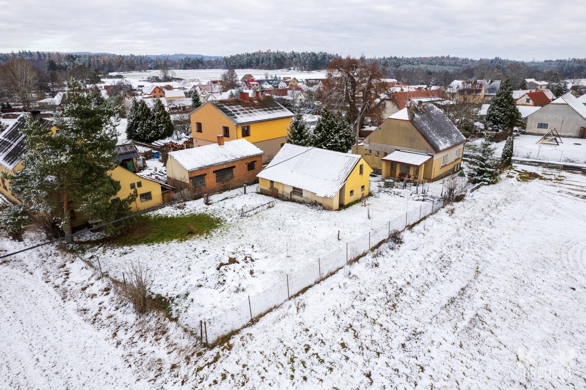 Celková výměra pozemků včetně zahrady činí 1 042 m². Zahrada poskytuje dostatek prostoru pro relaxaci, pěstování nebo budoucí doplňkové stavby. Nemovitost je situována v tiché části obce, obklopené zelení, a díky své poloze nabízí ideální prostředí pro klidné bydlení i rekreaci.